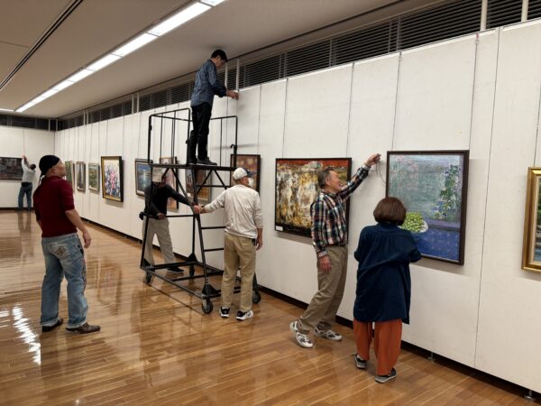 示現会熊本支部は毎年4月末に熊本示現会公募展を実施し100名余りの応募をいただいております。5月には示現会巡回展を県美術館分館で行い、それと合わせて先の公募展作品をギャラリーで展示、多くの観覧者で賑わいます。本年も事前に画材店や画廊に必要な募集要項や案内、チケットなどおいてありますので出品、ご鑑賞ください。