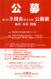 第66回示現会巡回熊本展と第1回熊本支部公募展は以下の会場・日程で開催されます。皆様お誘いあわせの上お出かけください。